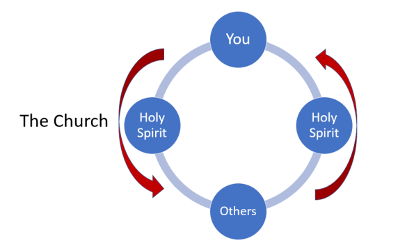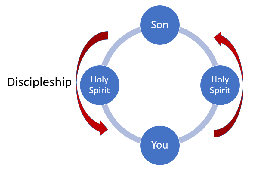 But this still leaves us with the problem of describing God’s “inner-life” and all the problems that a stale view of the “Immanent Trinity” brings. It doesn’t necessarily tell us anything meaningful about how God interacts with or loves creation, nor does it tell us about how we should treat each other. If, however, we accept Rahner’s view that “The Economic Trinity is the Immanent Trinity and vice versa”, that God’s inner-life actually is what God is doing in creation, then the model that we have created for the Immanent Trinity could also describe what God is doing in and for you as the process of discipleship: